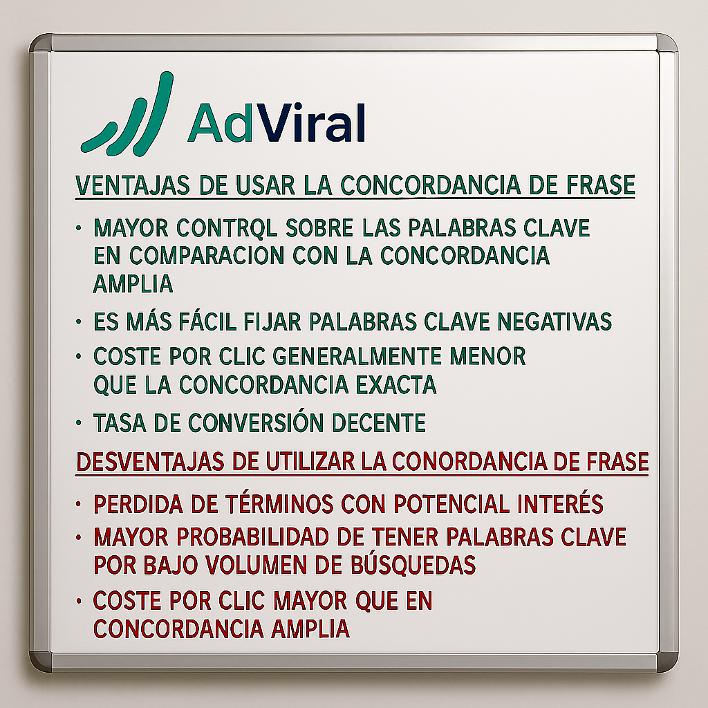 • Mayor control sobre las palabras clave en comparación con la concordancia amplia