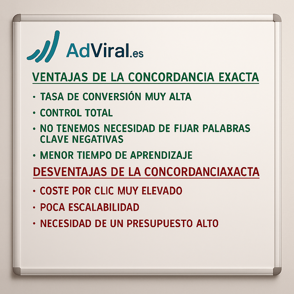 Generalmente este tipo de concordancia tiene un coste por clic más elevado que la amplia.